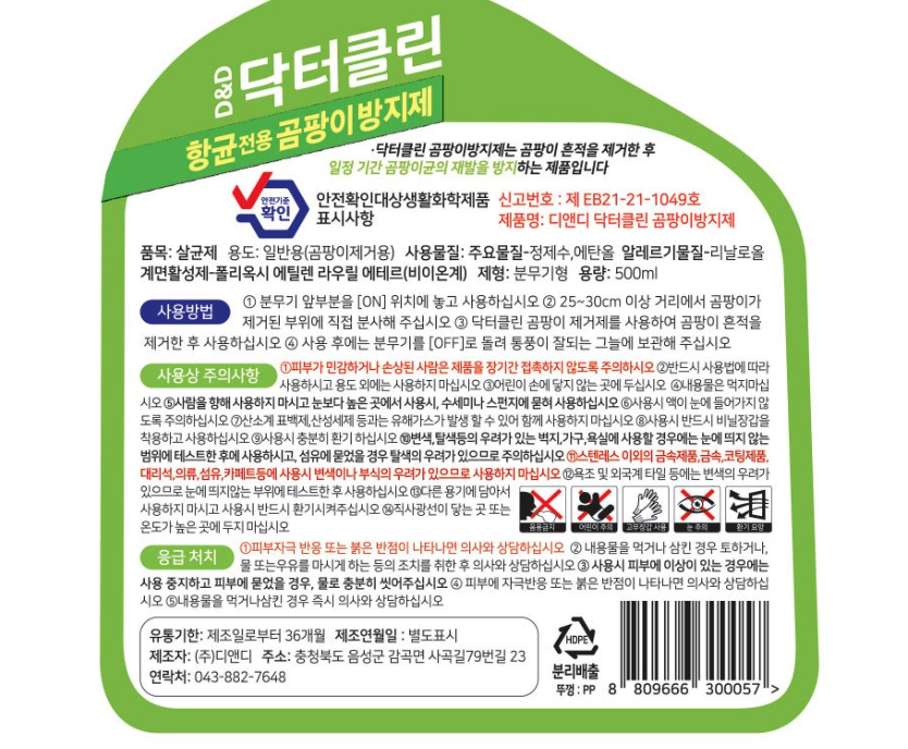 - 이 제품은 표면에 보호막을 형성하여 곰팡이 포자가 다시 자리 잡지 못하도록 하며, 장기적인 예방 효과를 제공합니다.